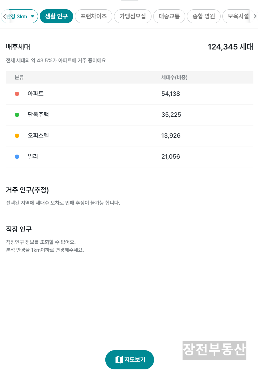 현장 기준 반경 1KM ~ 3KM 내 거주 인구
