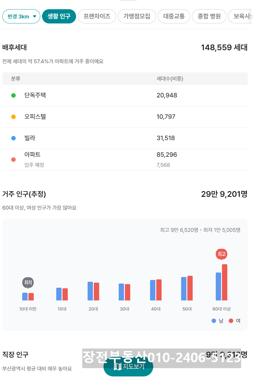 현장 기준 반경 1KM ~ 3KM 내 거주 인구(추정)