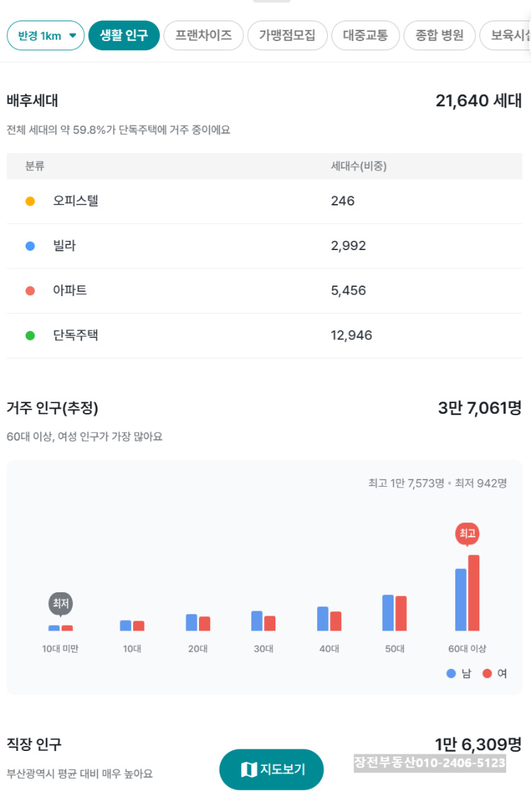 현장 기준 반경 1KM ~ 3KM 내 거주 인구(추정)