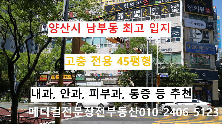 반갑습니다 장전부동산입니다 오늘은 양산시 남부동 소재 피닉스빌딩 메디컬 임대 안내를 하도록 하겠습니다 피닉스빌딩은 양산시 남부동 대단지 아파트 중심에 위치하고 있는 남부동 최고의 입지 상가건물입니다 현재 이비인후과, 치과, 한의원이 진료 중에 있으며 추천 병원은 피부과, 내과, 통증의학과, 신경외과, 안과 등입니다 해당 건물에서 오랜만에 나온 매물이라 학원 등의 문의가 많지만 임대인은 메디컬 유치를 희망하고 있기에 조금 기다려보기로 했습니다 경남 양산시 소재 병의원 개원을 계획 중이면 해당 입지 꼭 확보하시길 바랍니다