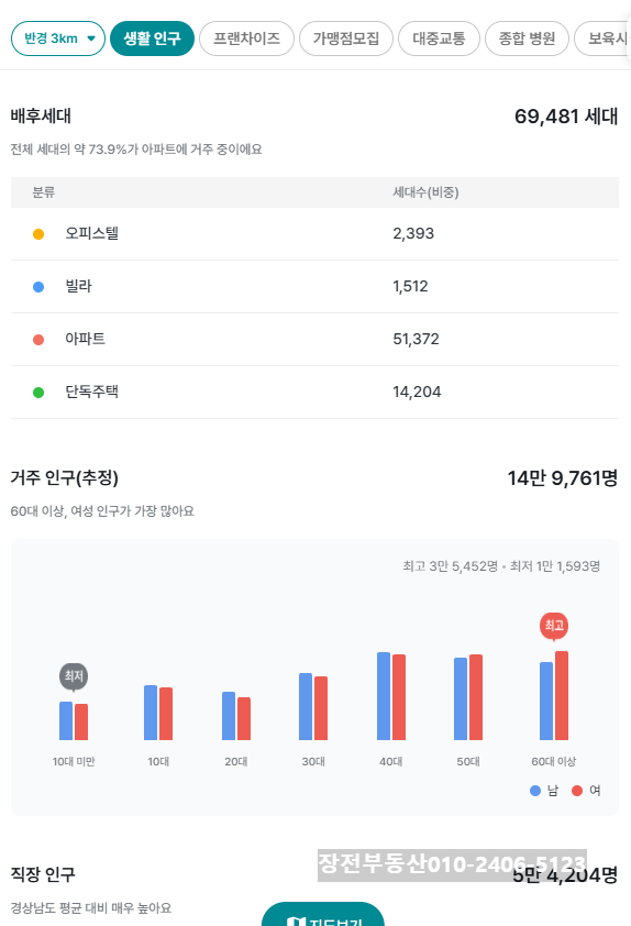 현장 기준 반경 1KM ~ 3KM 내 거주 인구(추정)